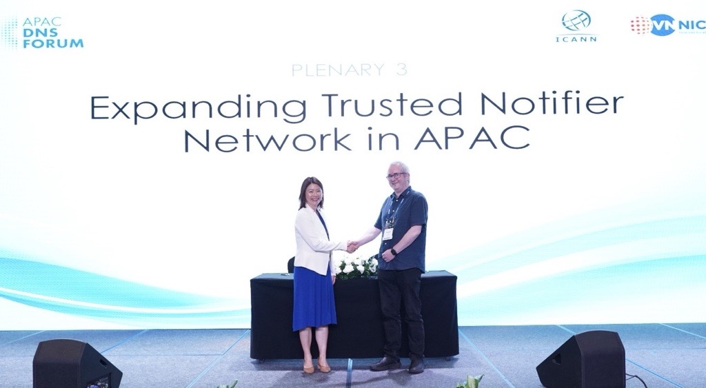 (台北訊,2025年5月9日) 國碼頂級域名「.tw」及「.台灣」註冊管理機構台灣網路資訊中心(TWNIC)與英國國碼「.uk」域名註冊管理機構Nominet,今日於越南河內舉辦的「網際網路名稱與號碼指配機構亞太域名系統論壇」(ICANN APAC DNS Forum)正式簽署合作備忘錄 (Memorandum of Understanding,MoU),雙方啟動「可信任通報者」(Trusted Notifier,TN)合作機制,共同致力於提升全球域名空間的信任與安全;此次是TWNIC與Nominet首度合作,象徵兩大國碼註冊管理機構在「可信任通報者」框架下建立跨國碼網域、跨組織協力的聯合機制;雙方展現了對網際網路治理責任的承諾,也呼應國際社群對於加強DNS(Domain Name System)治理與防制濫用的高度期待。今天Nominet同時與 .asia 頂級域名註冊管理機構 DotAsia簽署雙邊合作備忘錄,在TWNIC與DotAsia原已建立的「可信任通報者」的合作基礎上,更進一步拓展在DNS信任與安全治理的跨域合作夥伴關係。